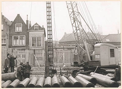Het heien voor de fundering van de in de Heer …