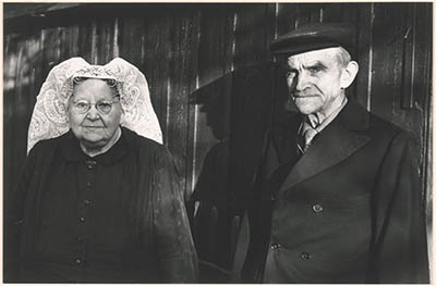 Het echtpaar van Driel-van Dubbeldam voor een houten …