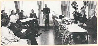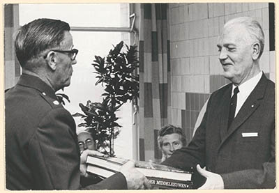 Adjudant Den Ouden (links) overhandigt namens de …