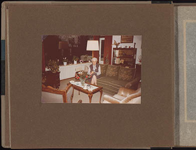 Bewoner in haar huiskamer van de Wilhelminastichting.