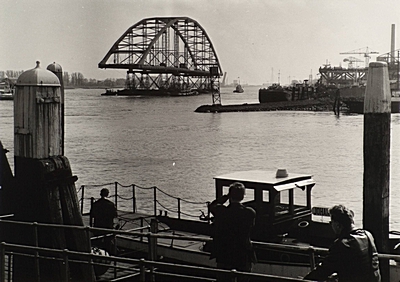 Bouw van de Merwedebrug tussen Dordrecht en Papendrecht.