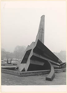 Sculptuur met fontein voor het stadskantoor aan de …