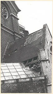 Het dak van het vervallen ingangsportaal van de Nieuwkerk.