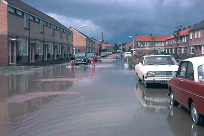Gezicht langs de Oude Straatweg (thans, 1975, DSW-Gebouw).