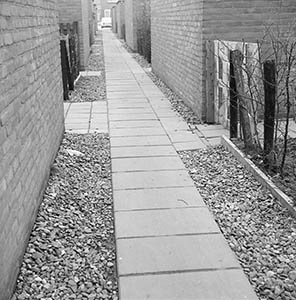 Brandgang tussen woningen aan de Halleyweg.