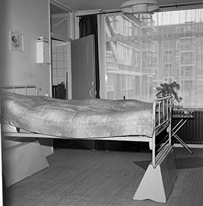 Verhoogd bed in een woning aan de Troelstraweg.
