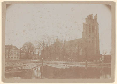 Gezicht op de Grote Kerk vanaf de Mazelaarsbrug