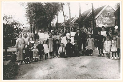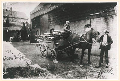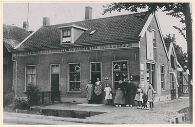 Een groep Dubbeldammers voor de winkel van A. Brand aan …