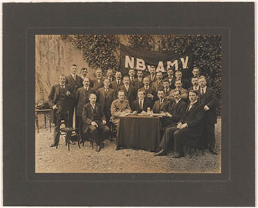 Groepsportret van bestuur en leden van de Nederlandsche …