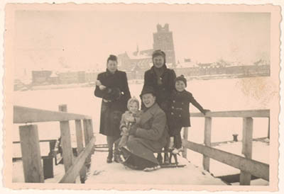 Gezin met slee op afrit van Zwijndrechtse oever naar het …
