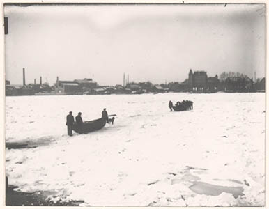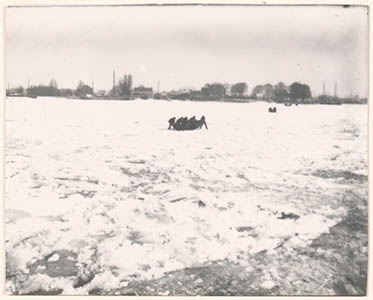 De dichtgevroren Oude Maas met zicht op Buiten Walevest, …
