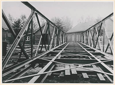 Een stalen brug liggend op het oefenterrein van de …