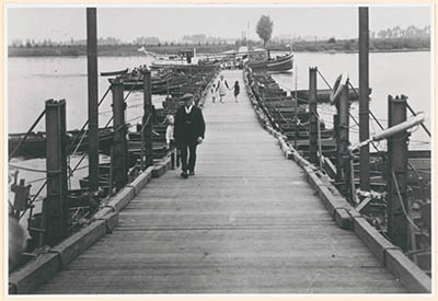 Een door de Dordtse pontonniers aangelegde pontonbrug …