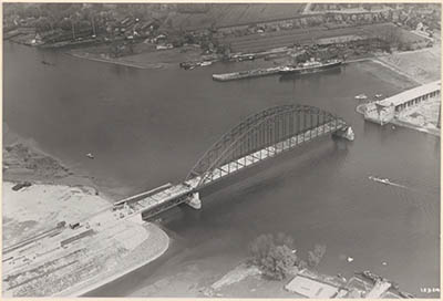 De verkeersbrug en de spoorbrug over de Oude Maas, gezien …