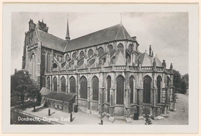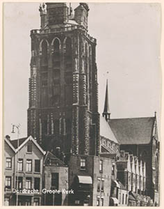 Grote Kerk. Links huizen aan de Korte Geldersekade.