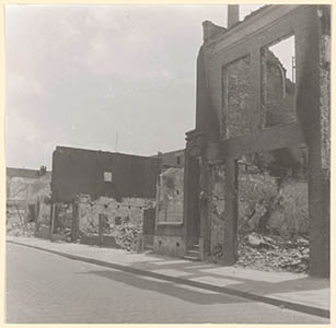 In de meidagen van 1940 verwoeste huizen aan de zuidkant …