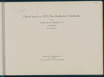 Titelblad van album met foto's van het bezoek van prins …