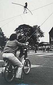 Luchtacrobaat van de Traber Truppe boven het …