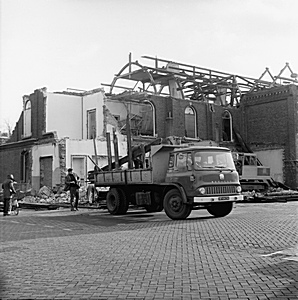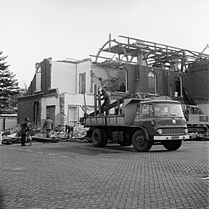 Brandweerlieden bezig met nablussen van de uitgebrande …