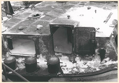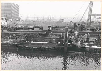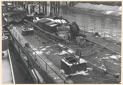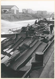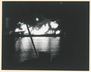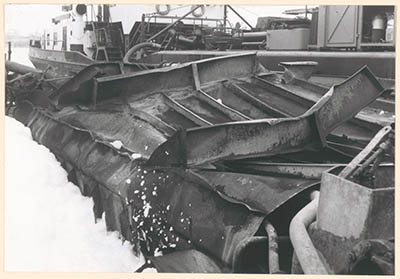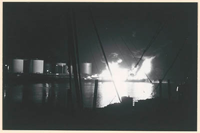 Het tankschip Manuella in de Julianahaven na de explosie …