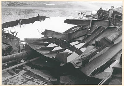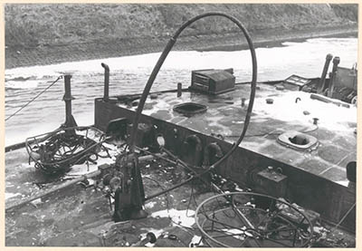 Het met blusschuim gevulde wrak van het tankschip …