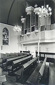 Interieur met orgel en glas-in-loodraam van de Oude Kerk …