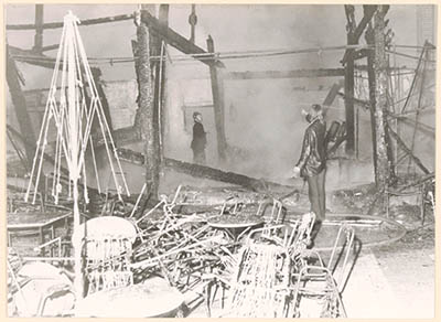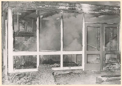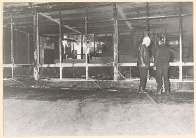 Het uitgebrande Wantijpaviljoen in het Wantijpark na de …