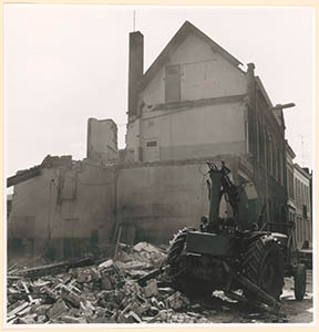 De sloop van de brandweerkazerne aan de Vest nr. 58; de …