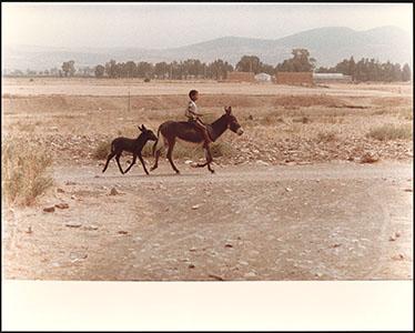 Straatbeeld in Tunesië met een jongen op een ezel