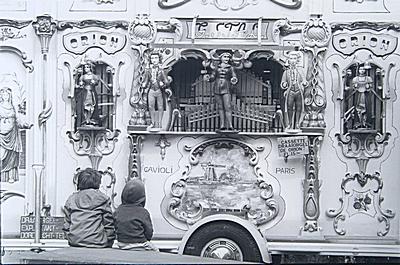 Kindertjes luisteren naar het draaiorgel Orion van G. Stal