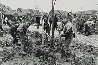 Kinderen planten bomen in de Weerdestein op boomplantdag