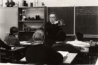 Een les vaktheorie door dhr. Buijsen aan de vierde klas …