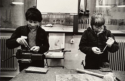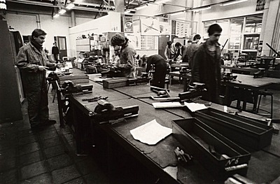 Leerlingen van de ambachtsschool aan het werk op de …
