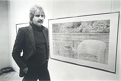 Beeldend kunstenaar Jaap Schlee voor één van zijn werken …