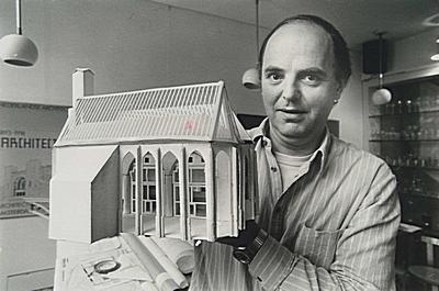 Architect Theo van Halewijn toont een maquette van de te …