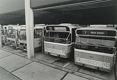 Stadsbussen in de remise aan de Baanhoekweg