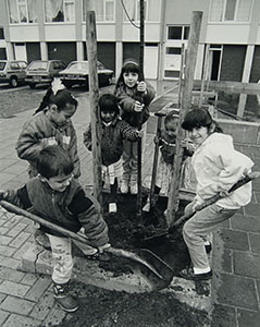 Kinderen planten een boom in de Van Den Kloosterstraat in …