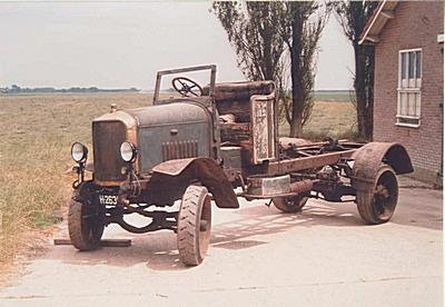 Oude sproeiwagen van de gemeentereiniging