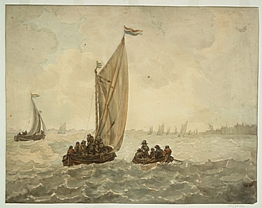 Schepen op de Oude Maas met in het verschiet de stad …