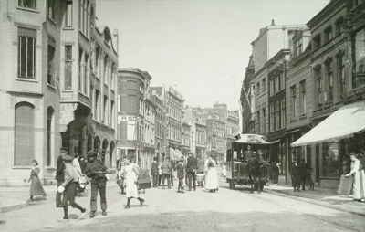 De Visstraat met de paardentram omstreeks 1910. Foto …