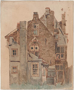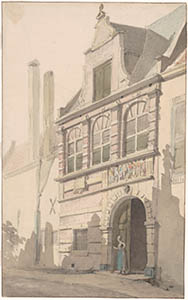 De voorgevel van het Sacramentsgasthuis aan de noordzijde …