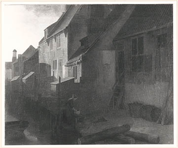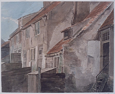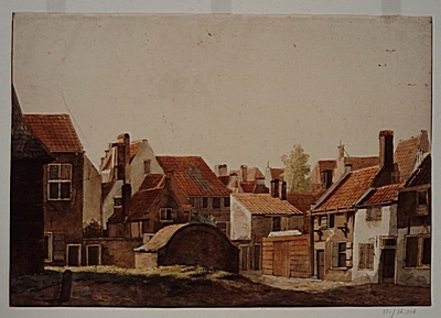 Schilderij van achterzijde van huizen aan de Vest tussen …
