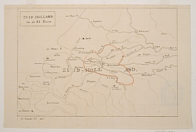Zuid-Holland in de 11e eeuw; figuratieve kaart waarop met …