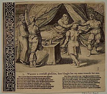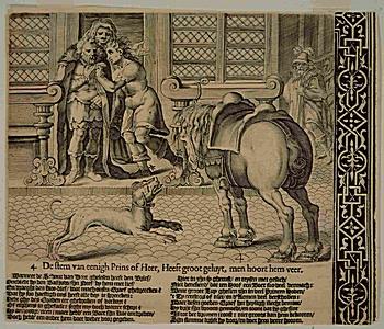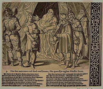 Detailprent van een plaat over de justitie van Graaf …