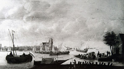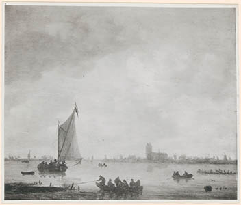 Gezicht op Dordrecht vanaf de Oude Maas, naar een …