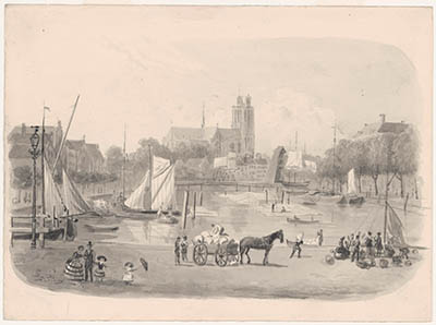 's Gravendeel, ca. 1840; het Veer, gezien vanaf de Kil