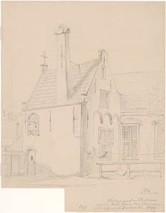 De achter- en zijgevel van het Heilige Geest en Pesthuis …