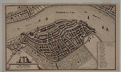 Plan van Dordrecht met inschrift 'Dordracum' en links het …