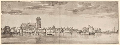 Detail van schilderij gezicht op Dordrecht door Adam …