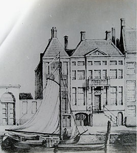 Wolwevershaven 43. Naar een sepia-tekening door C.A.W. …